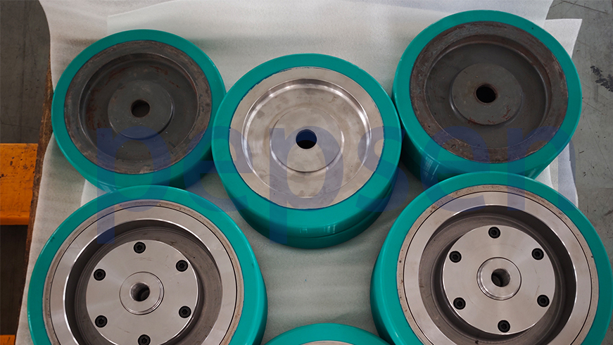其次,聚氨酯材質的包膠輪有很好的高承載力,在烘干設備工作過程中不會出現打滑,無偏移等現象。同時,聚氨酯材質輪子有很好的耐磨和長壽命,在烘干機內高頻摩擦環境下,聚氨酯耐磨性遠超普通橡膠,減少了更換的頻率,降低了停機的維護時間。